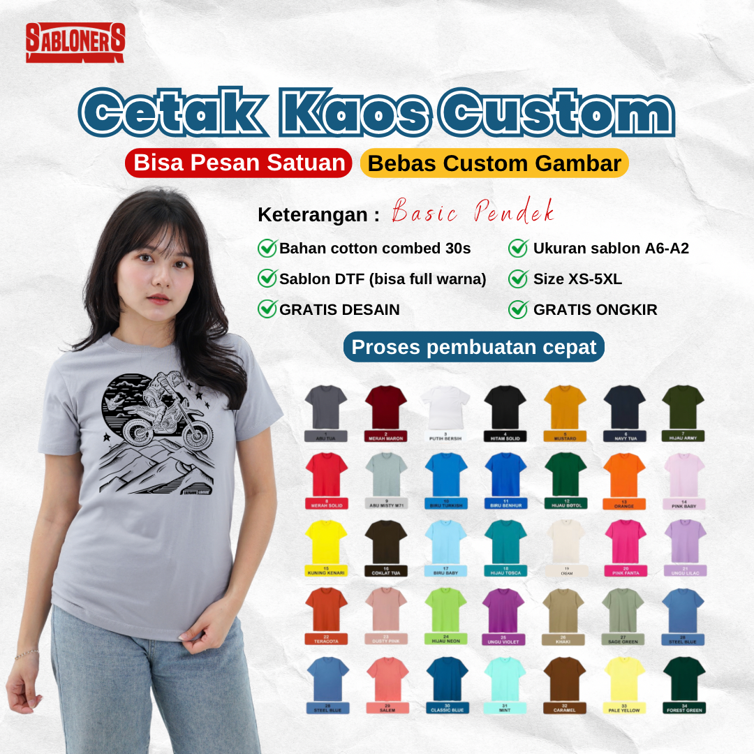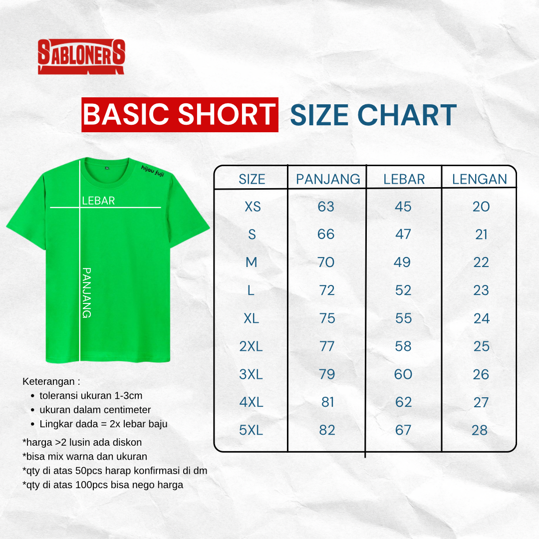 • Tersedia bahan cotton combed 30s / 24s / 20s